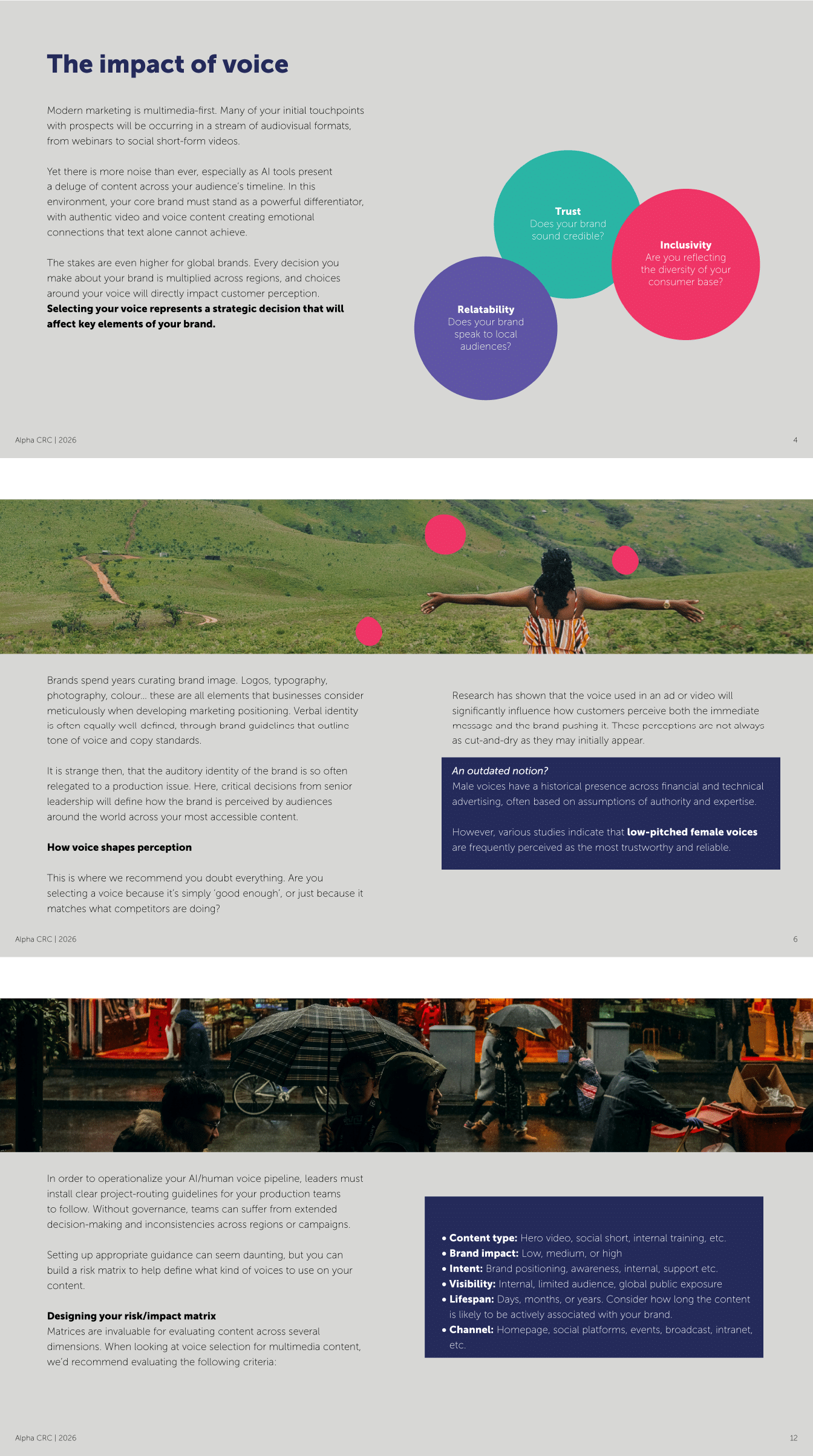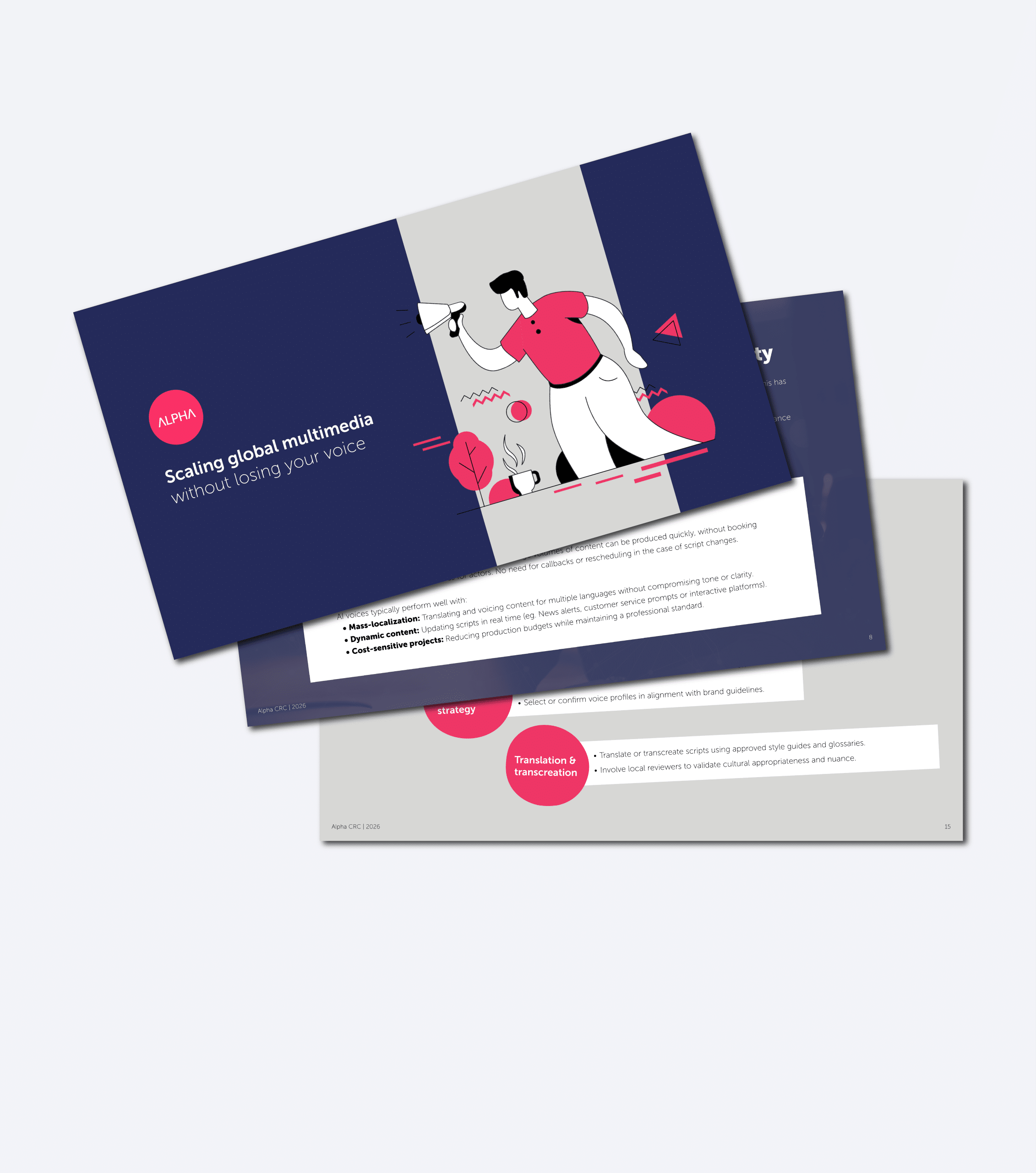 Developed by Alpha Studios’ audiovisual specialists, this guide to implementing an AI voice governance framework explores where synthetic audio can be useful, and where it’s best to rely on human voices to deliver maximum impact.